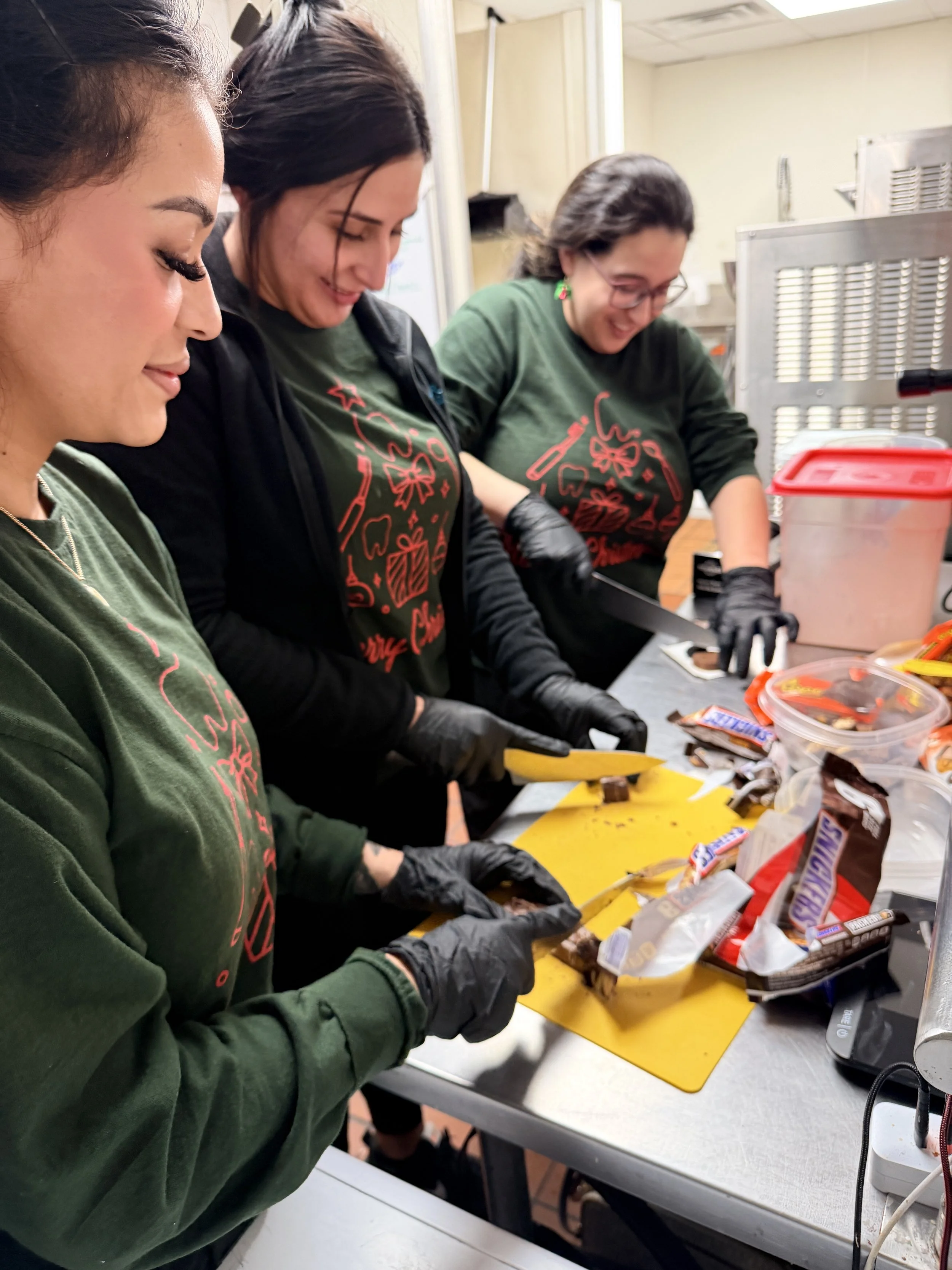 Our dental team together during a holiday team-building activity at The Green Cow Creamery.